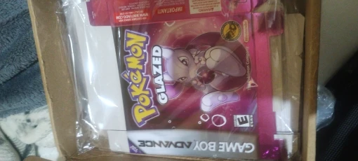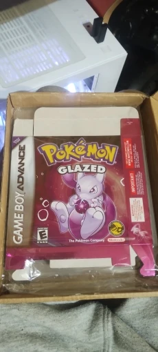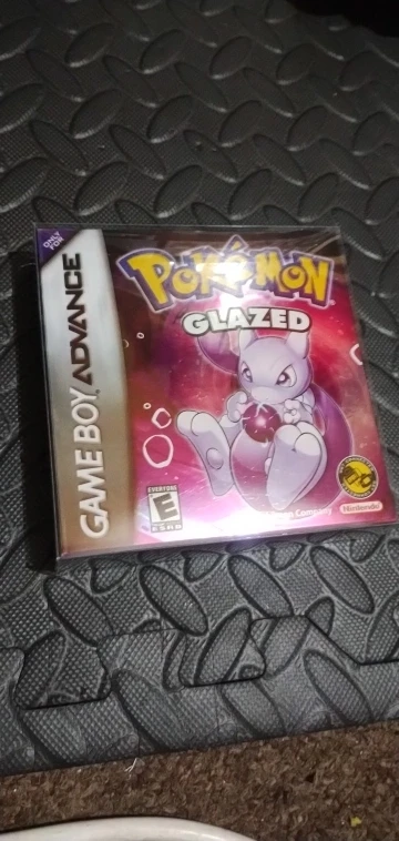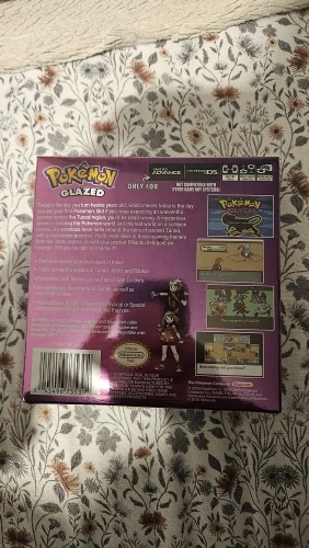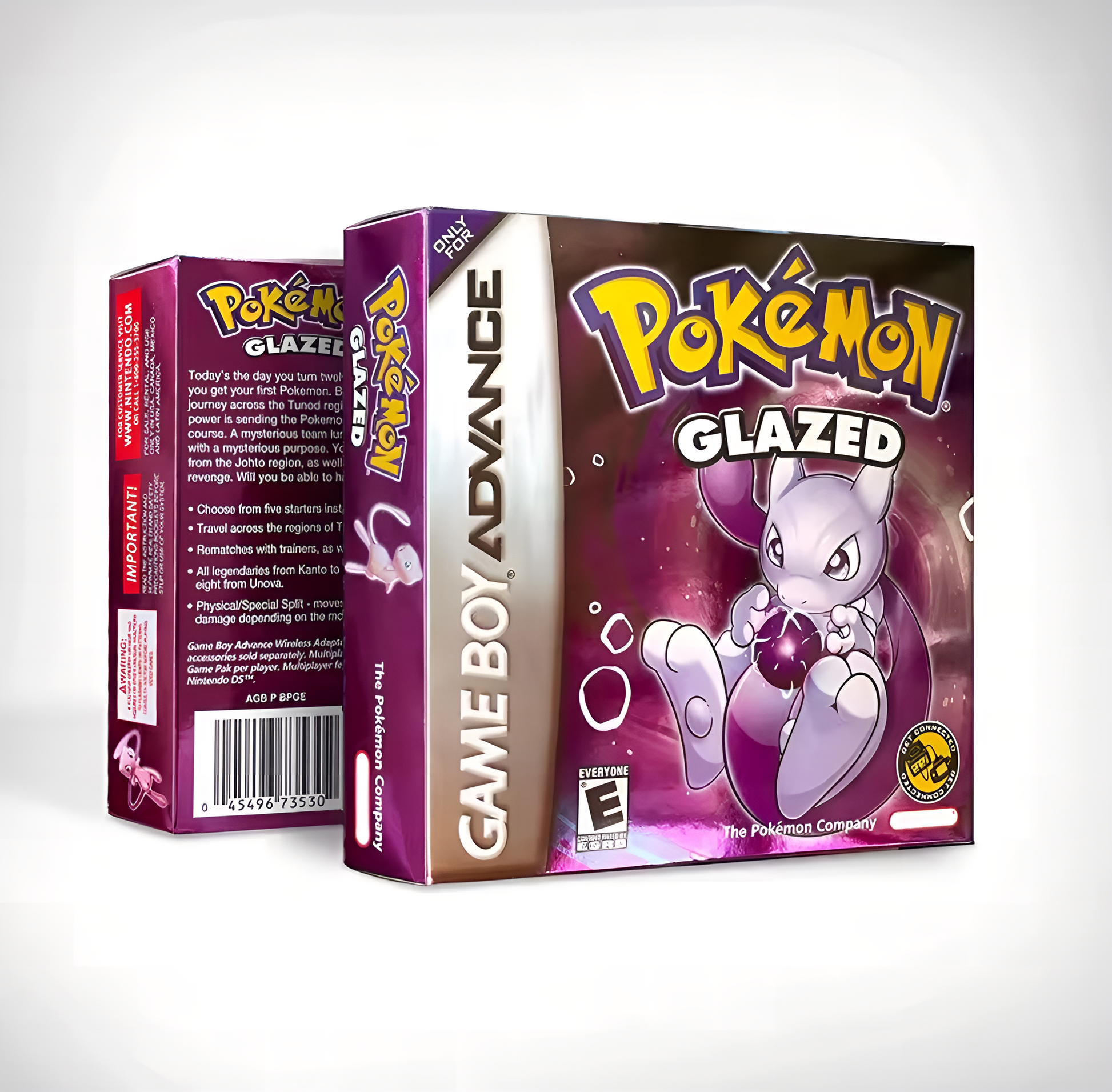 This is a Pokemon ROM Hack called Pokemon Glazed for the Gameboy advance! Can be played on gba, gba SP, NDSL and GBM! The label and cover design are made by us!