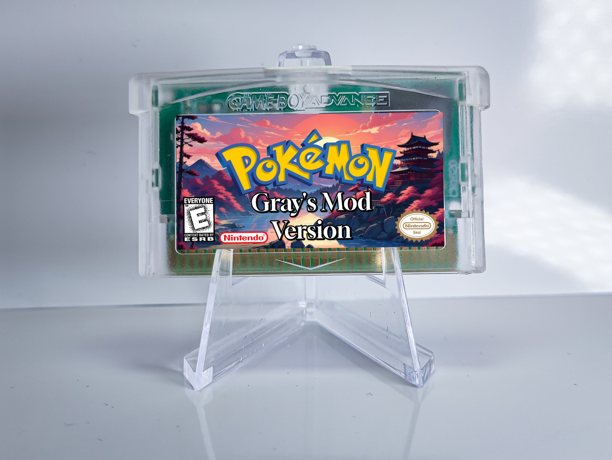 This is a Pokemon ROM Hack called Pokemon Gary's Mod for the Gameboy advance! Can be played on gba, gba SP, NDSL and GBM! The label on the cartridge is made by us!